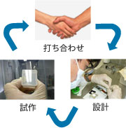 受注後は開発担当者様との綿密な打ち合わせ・設計・試作を繰り返し、お客さまとご一緒に製品開発を進めさせていただきます。